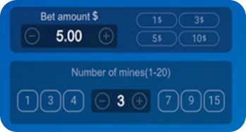 Place your bet and select the number of mines on the grid. The more mines, the faster your winnings.