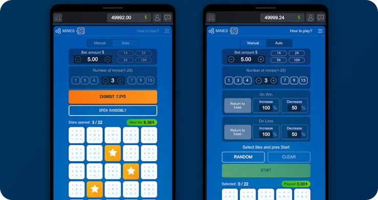 Flip the cards without hitting a mine! Get as many stars as possible to increase your bankroll.